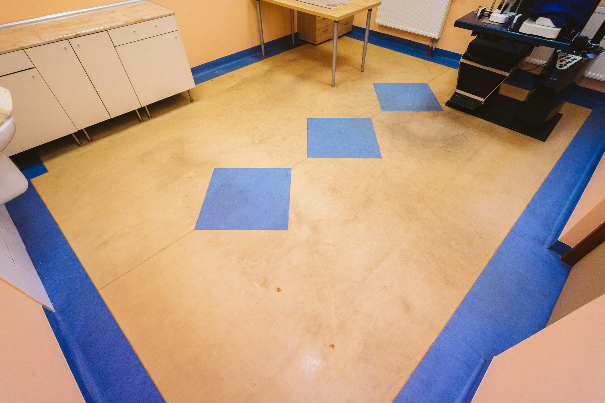 Renowacja odbywa się bez remontu, bez pyłu i bez zamykania gabinetu, przywracając estetykę i funkcjonalność podłogi.