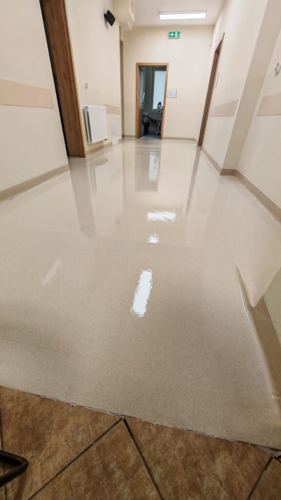 Renowacja wykładziny PVC w klinice medycznej w Brzegu Dolnym pozwoliła przywrócić pełną estetykę i funkcjonalność podłogi w ciągu jednego popołudnia, bez wyłączania obiektu z użytkowania. Zastosowany lakier wypełnił rysy i zabezpieczył powierzchnię, a końcowy efekt był lepszy niż nowa podłoga, przy ułamku kosztów jej wymiany.