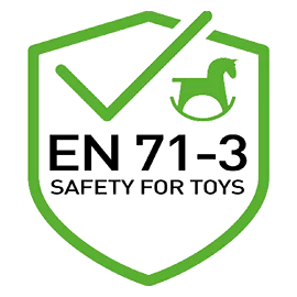 Oznacza, że materiały są bezpieczne w kontakcie z użytkownikami, w tym w środowiskach, gdzie przebywają dzieci. To standard często stosowany w obiektach edukacyjnych i przedszkolnych.