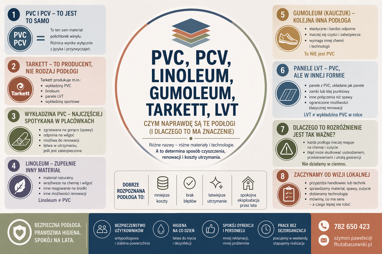 Dlatego sama informacja „mamy Tarkett” nie mówi nic o technologii ani możliwościach odnawiania wykładziny.
